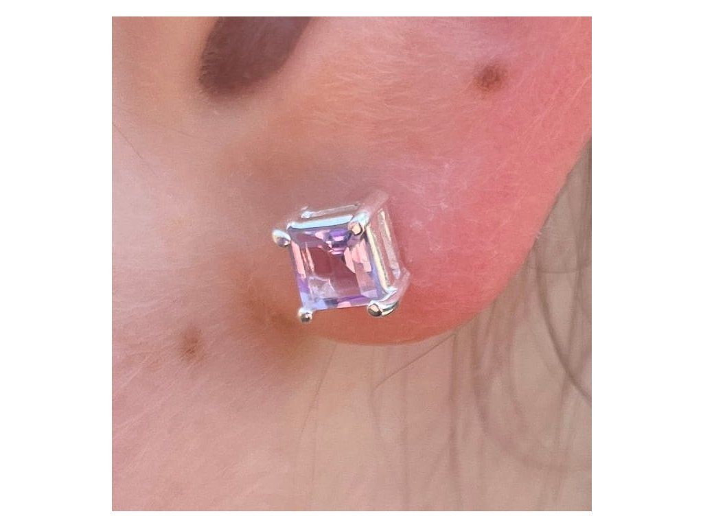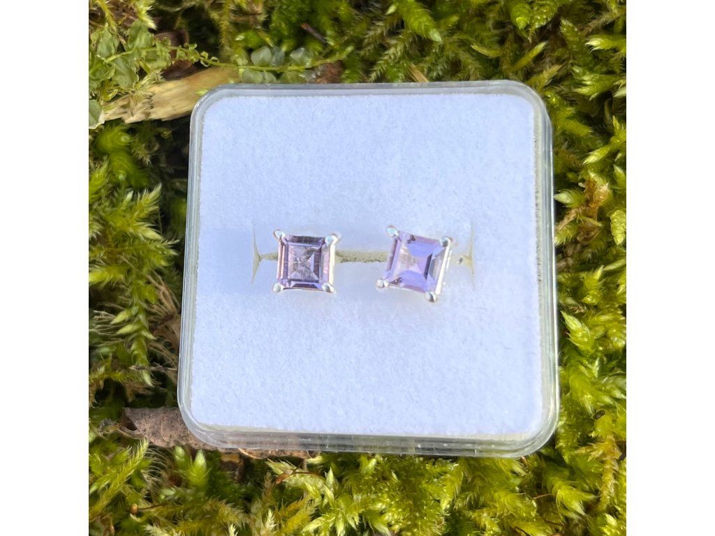 Velice jemné náušnice Ametyst 5x5 mm ve stříbře 925/1000.