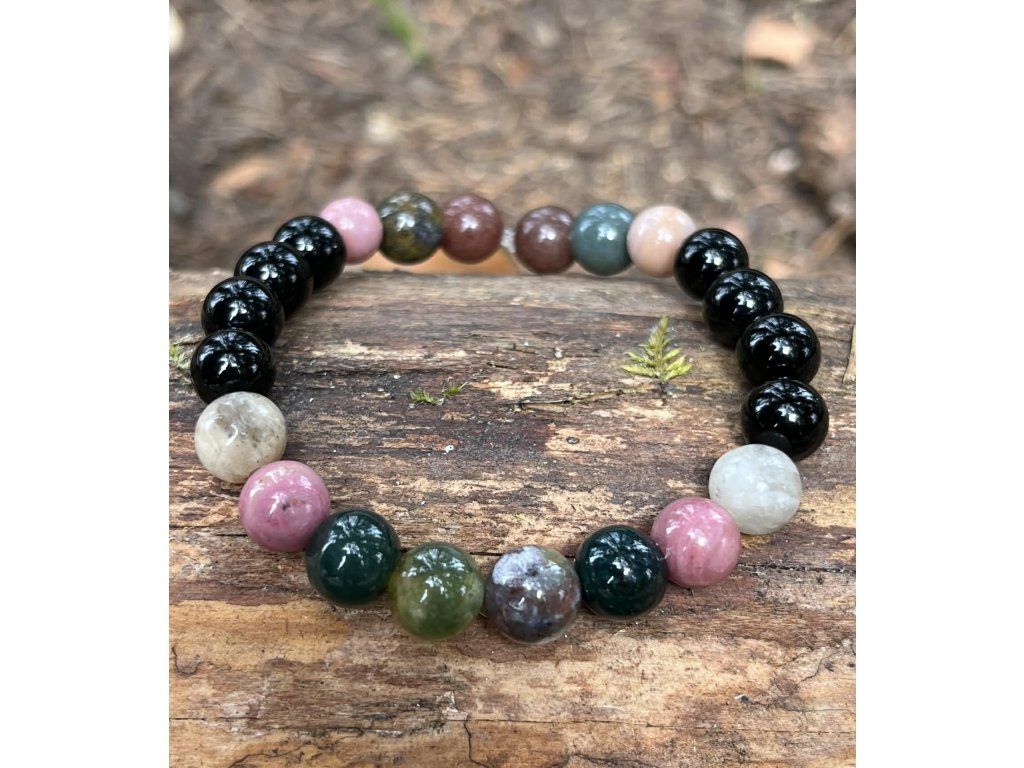Kombinace indiánského Achátu, černého Onyxu a něžného Rodonitu nás může podpořit v našich touhách a snech. Neměli bychom se vzdávat toho, po čem naše srdce prahne.