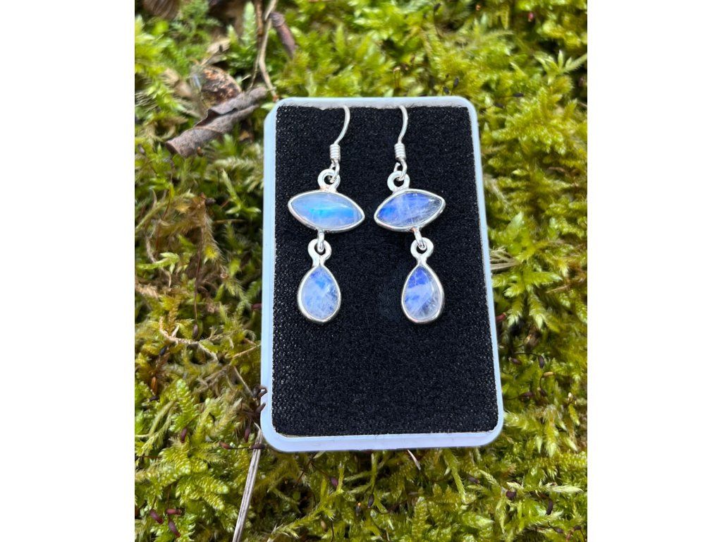 Decentní náušnice Měsíční kámen ve stříbře 925/1000.