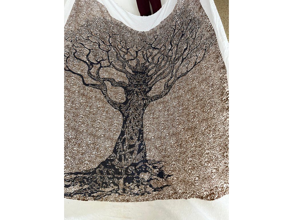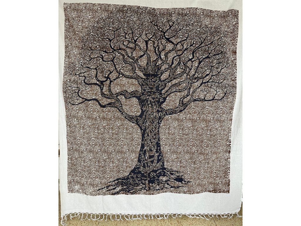 Strom na béžovém podkladu. V jemných přírodních tónech. Síla, zakořenění a důstojnost stromu krásně vyniká právě díky barevnému provedení.